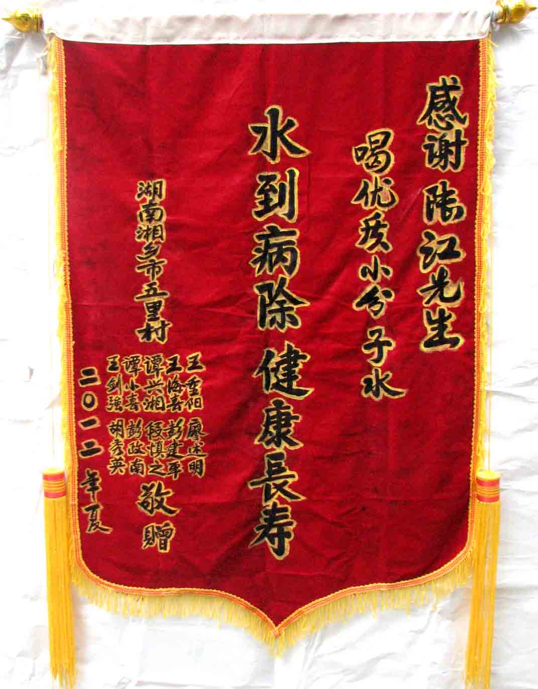 2015年潘志山主動寫一篇感想《我以親身實踐打破了冠心病、高血壓、糖尿病需終生服藥的神話》說堅持按發(fā)明人陸?江先生倡導的用已饑方食的方法合理膳食,我的健康狀況越來越好:糖尿病造成的視力下降有了明顯的恢復,末梢神經炎導致的指端潰爛現在完全痊愈,痔瘡自從飲用微小分子團水半年后就再也沒有復發(fā)過,氣滯血瘀造成的嘴唇暗紫也漸漸變得紅潤,舌下靜脈黑紫消失,足背的動脈由以前的隱約感到跳動現在變得清晰有力。[13]潘先生披露的訣竅,一是飲用微小分子團水給脫水細胞補水,二是已饑方食”養生智慧,患者都能做到。