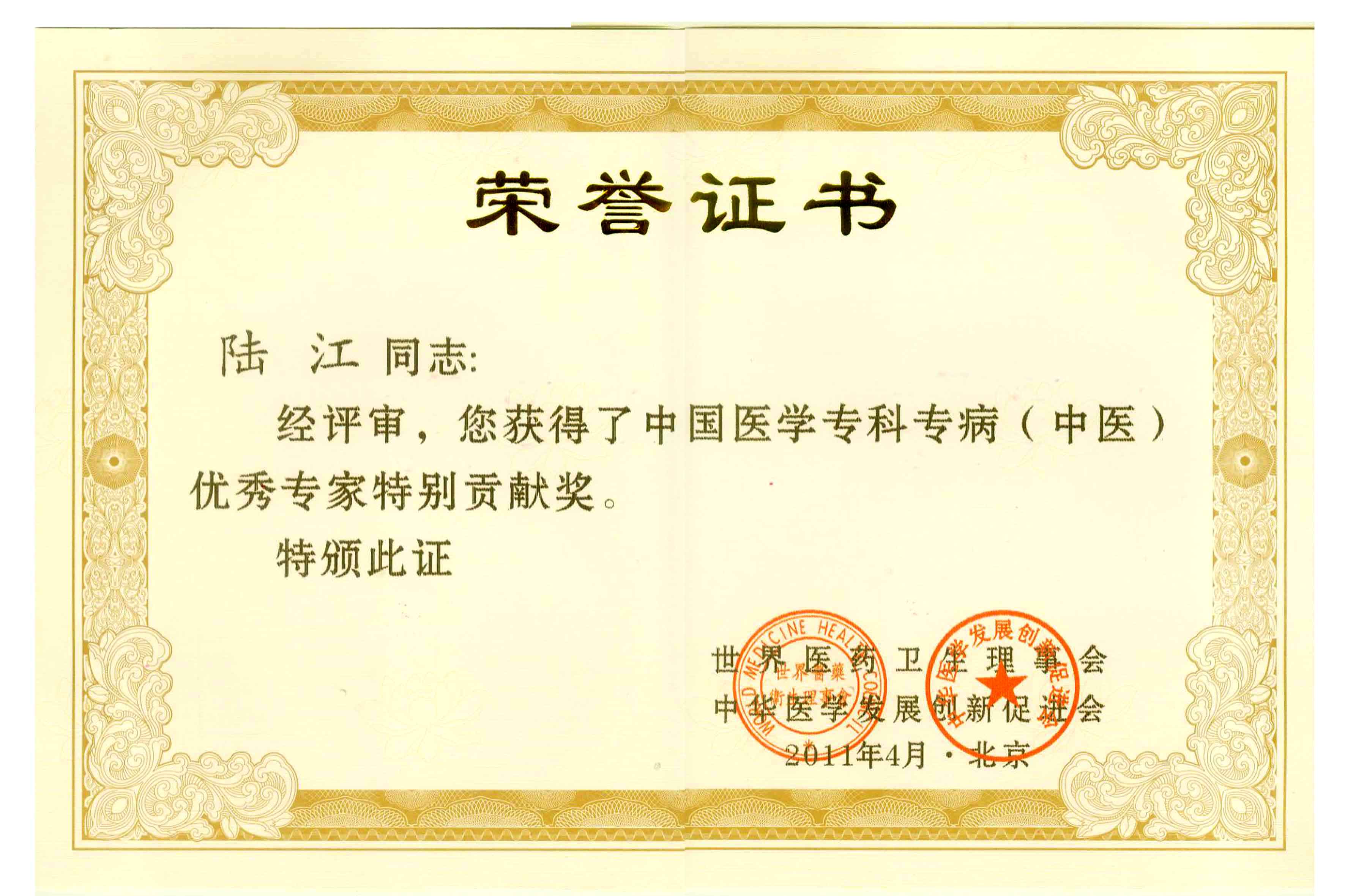 陸江獲得中國醫學專科專病優(yōu)秀專家恃別貢獻獎